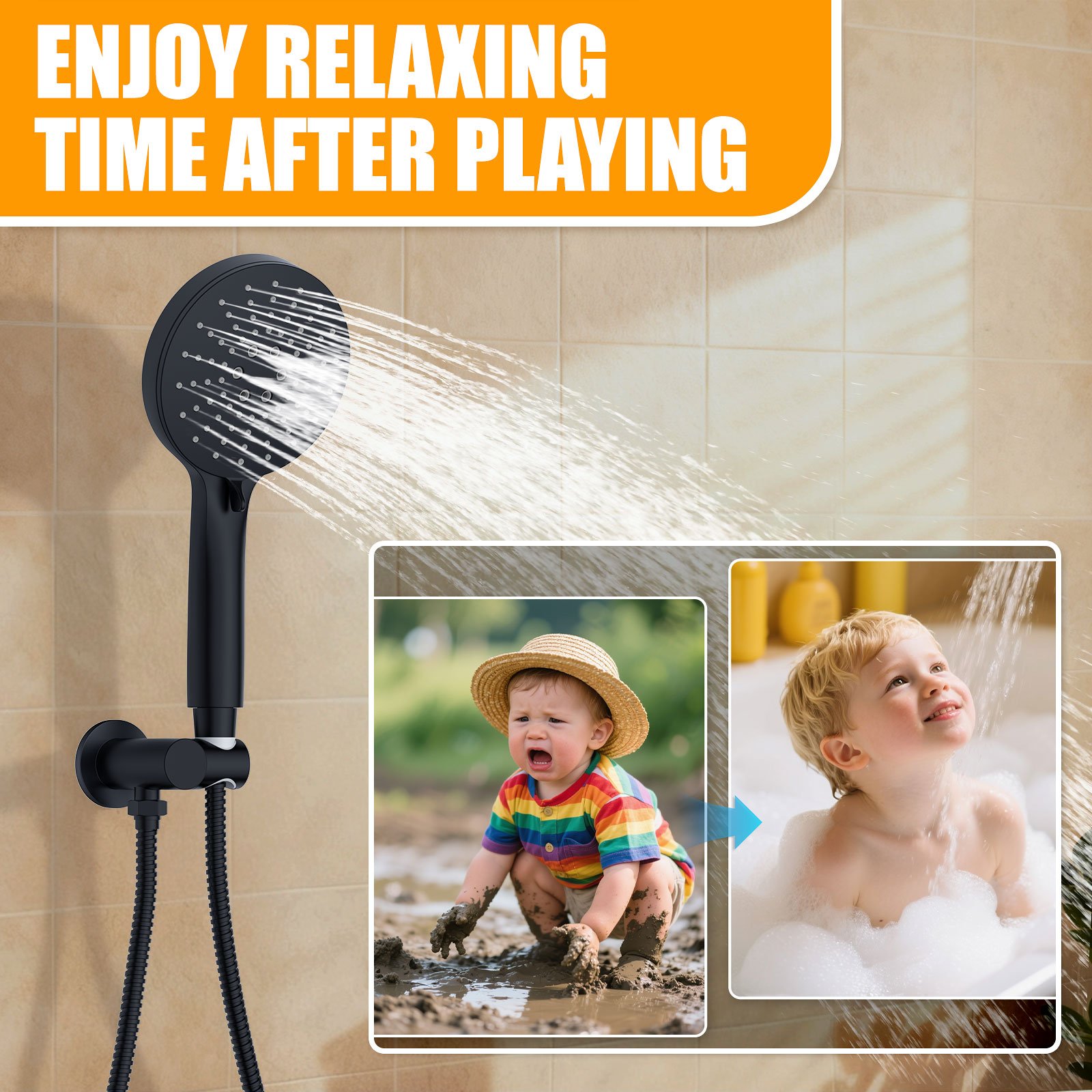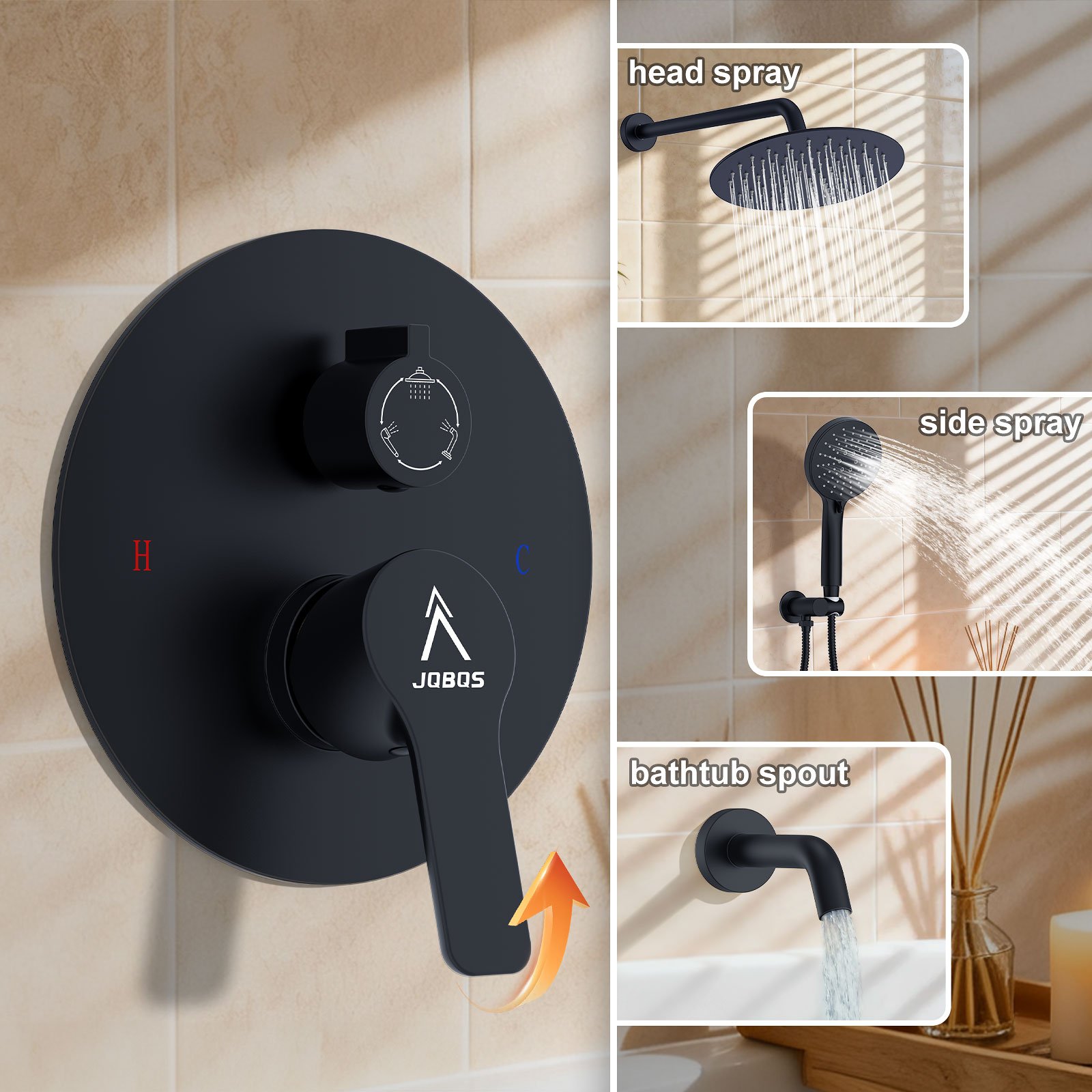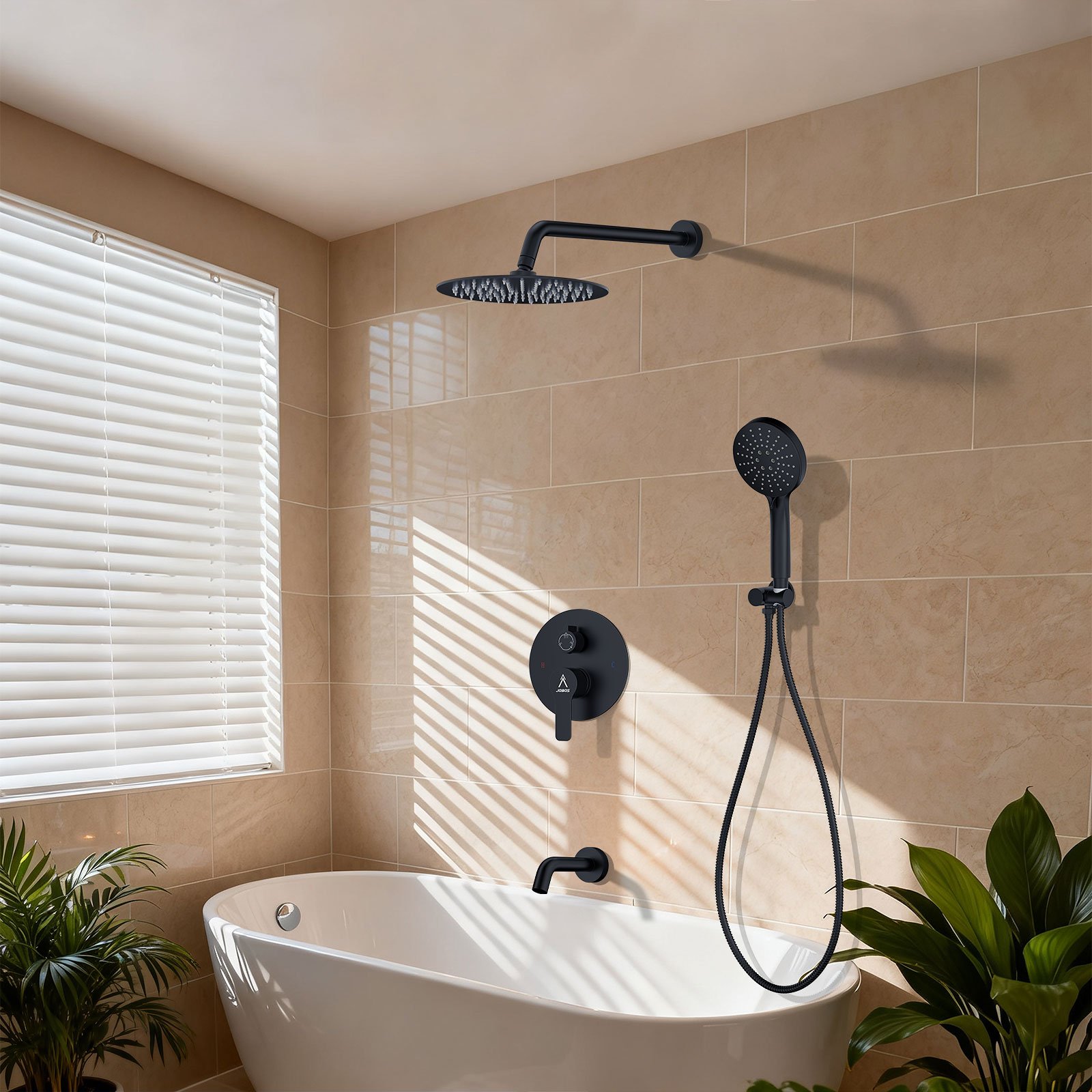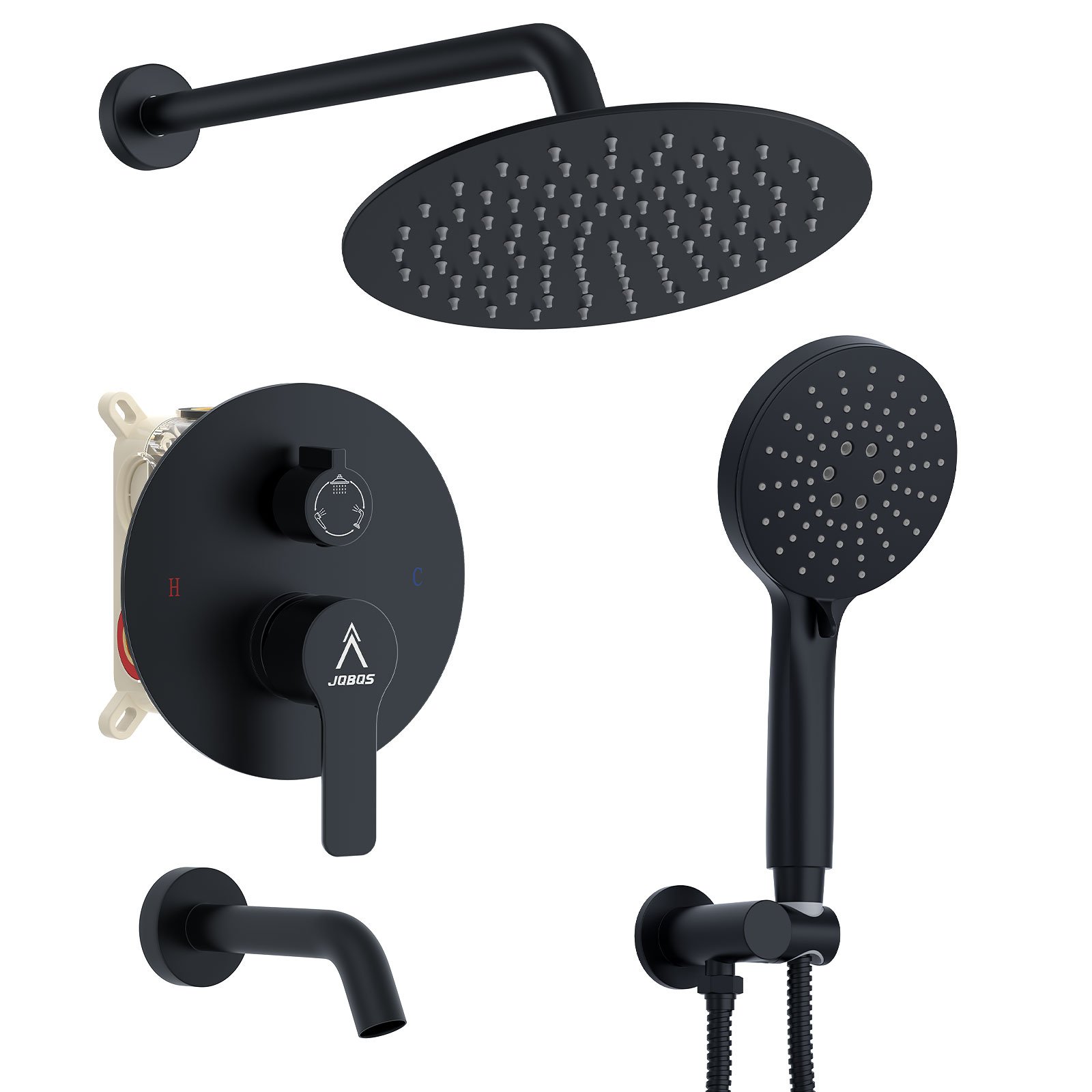 10-inch round bathtub with three functions, matte black finish.10-inch round bathtub with three functions, matte black finish.