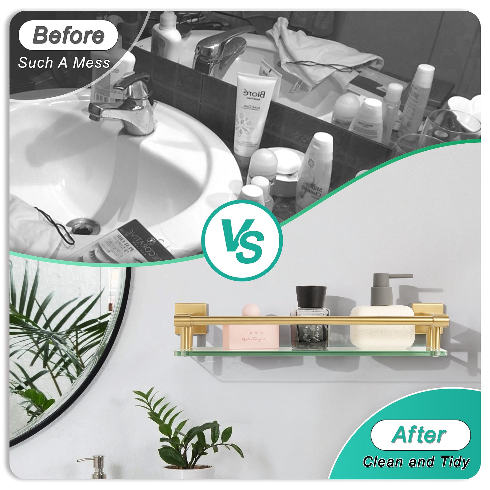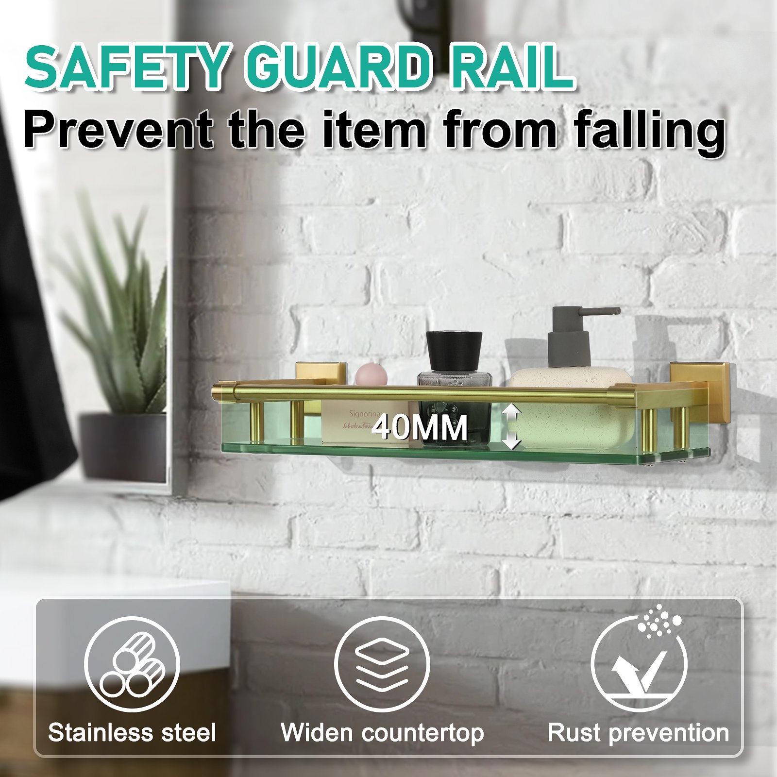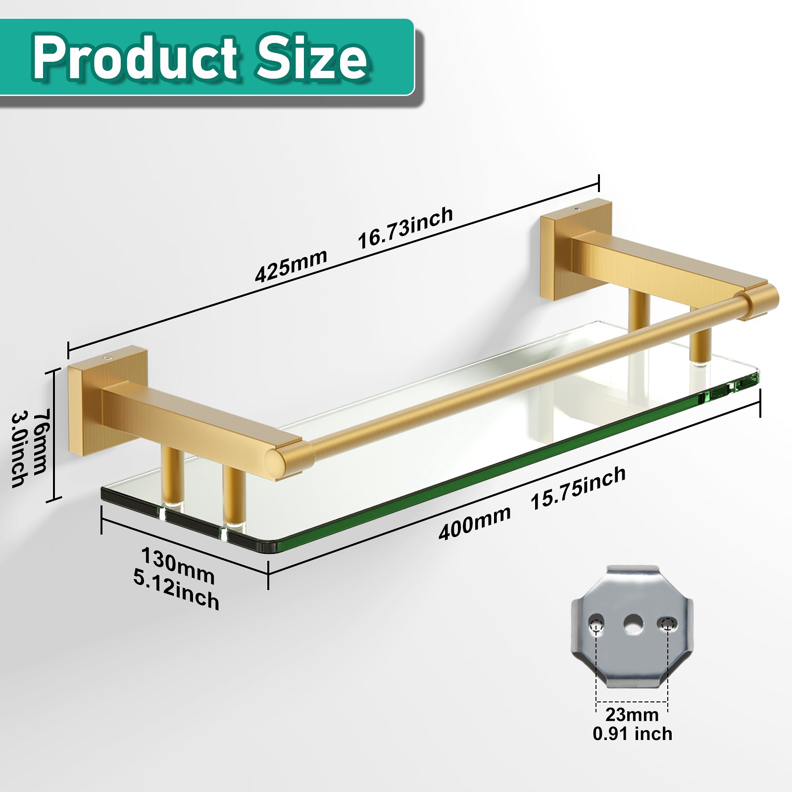 Crafted for durability, this glass shelf is manufactured with high-quality tempered glass to ensure long-lasting performance and safety. The brushed gold finish on the supporting components not only lends a luxurious touch but also resists fingerprints and corrosion, making it easy to clean and maintain. With a length of 16 inches, this shelf offers ample space to display your favorite decor items, organize essentials, or showcase your prized collection in an organized manner.