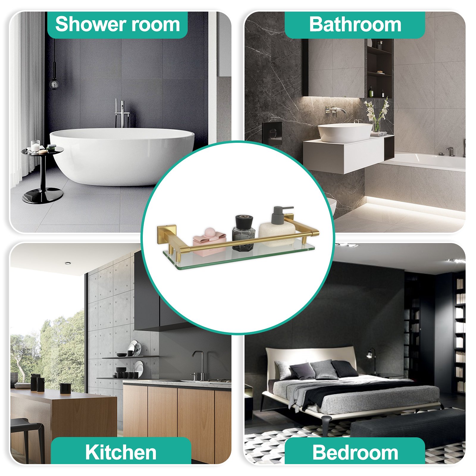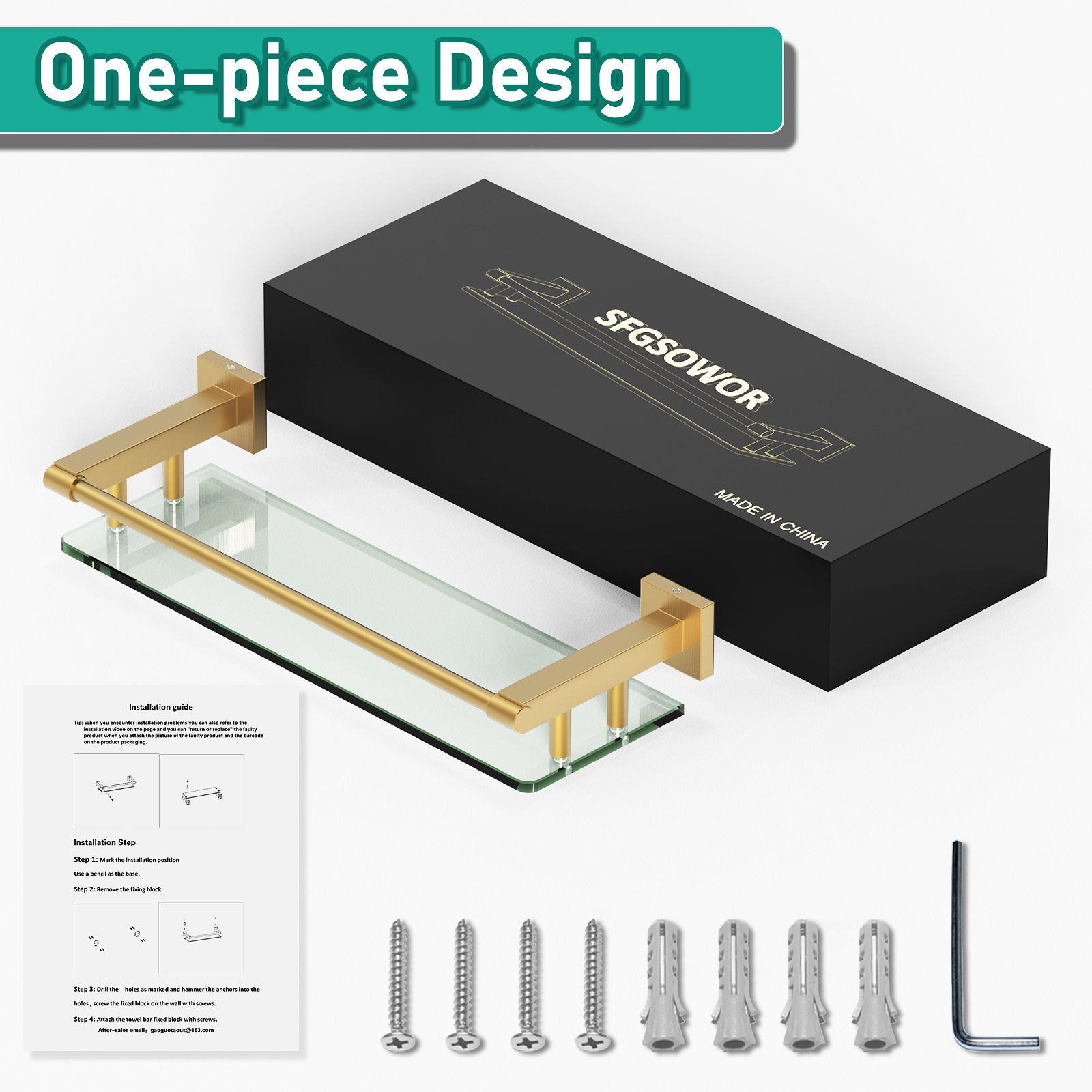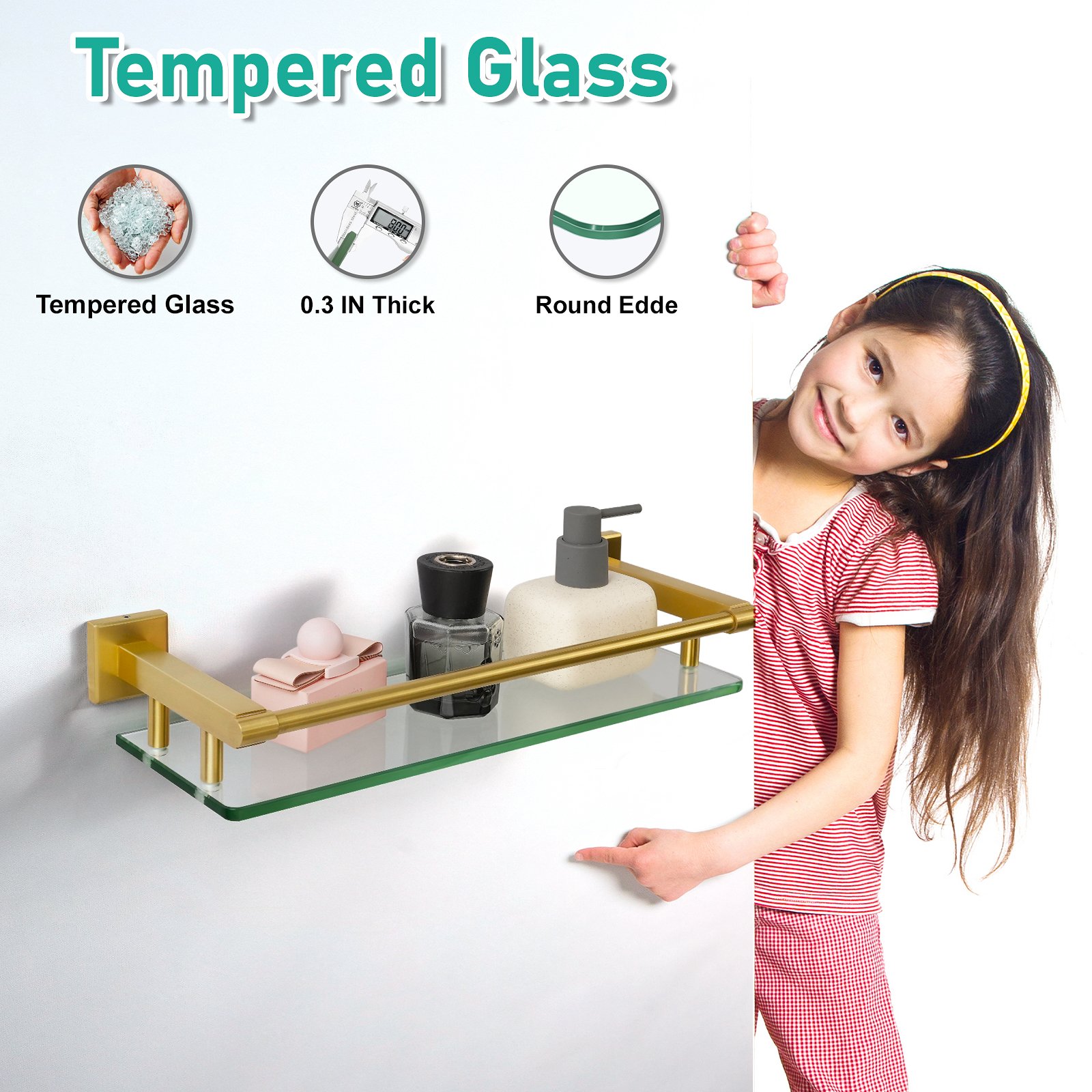 The 16-inch rodless glass shelf with a brushed gold finish is more than just a storage solution—it is a piece of art that elevates your surroundings. Make the smart choice today and experience the perfect blend of aesthetics, functionality, and durability.