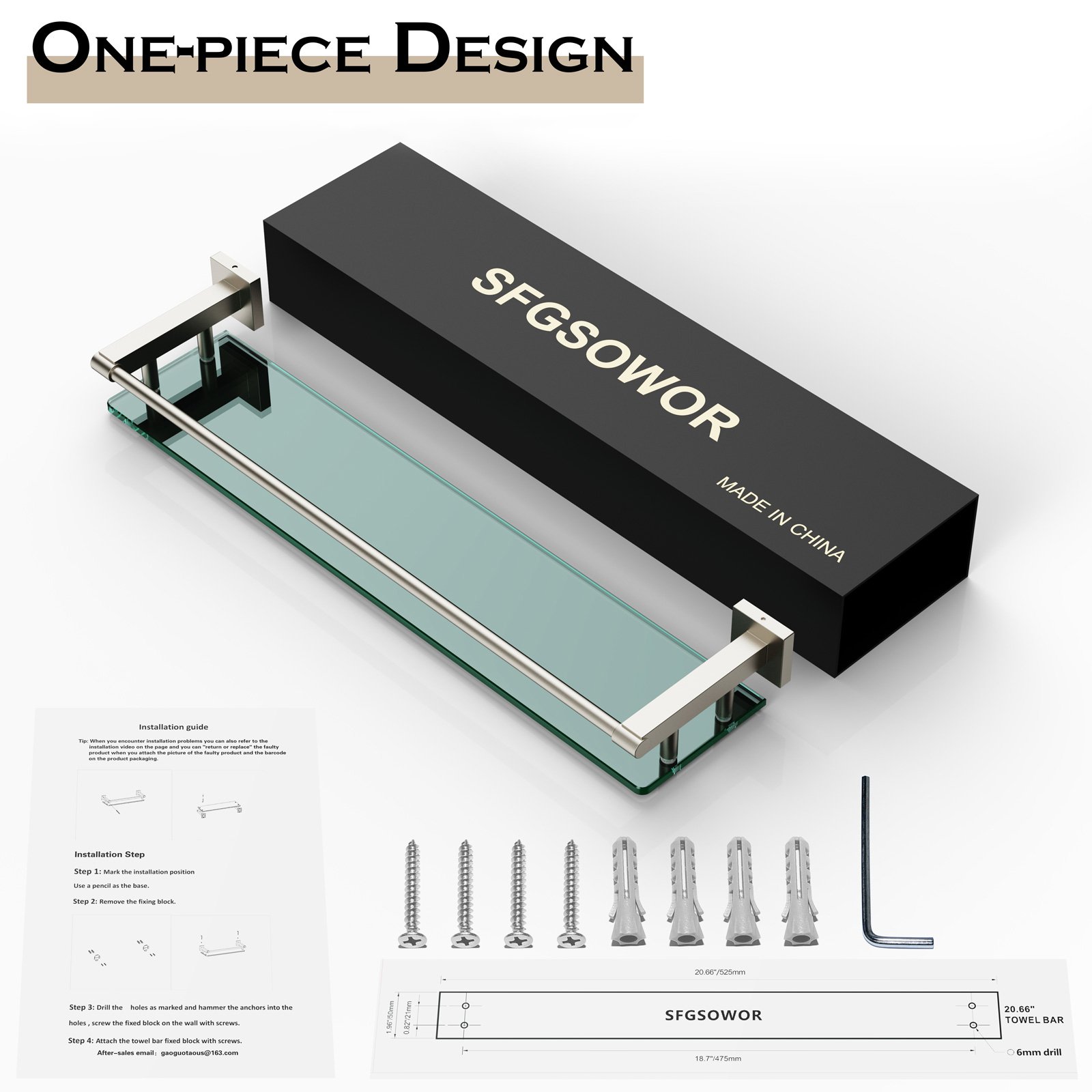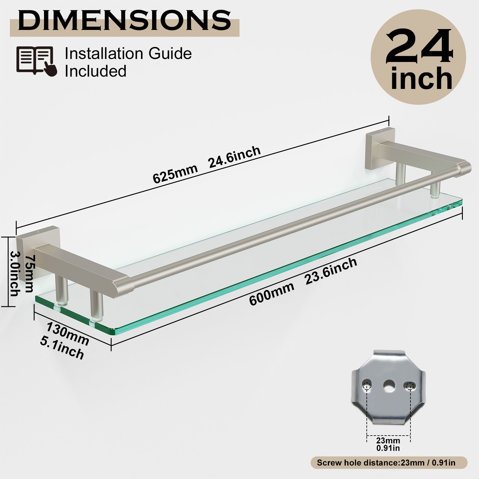 Installing the 24-inch rodless shelf is a hassle-free process. Featuring an innovative design, this shelf can be mounted securely without the need for rods, creating a clean and streamlined aesthetic. Additionally, the brushed finish resists fingerprints and smudges, making cleaning and maintenance effortless. It’s practical, stylish, and perfect for modern households looking for functional elegance.
